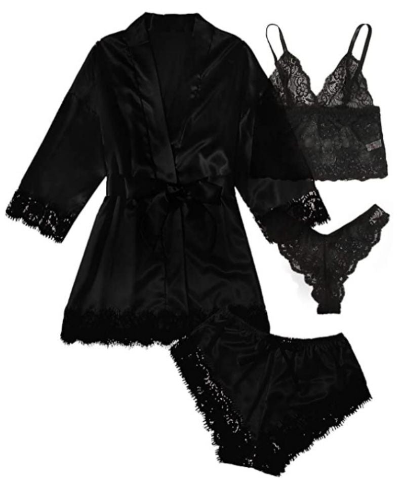 Odkryj czteroczęściowy zestaw nocny, który łączy delikatny połysk satyny z elegancką koronkową ozdobą. Głęboka zieleń podkreśla wyjątkowość, a miękki materiał delikatnie przylega do ciała, zapewniając maksymalny komfort zarówno w nocy, jak i rano.