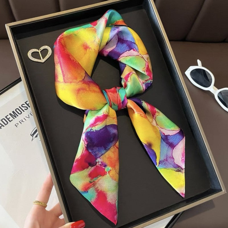 🔸 Uniwersalny model – nadaje się do noszenia jako szalik, dodatek do włosów lub nawet detal torebki